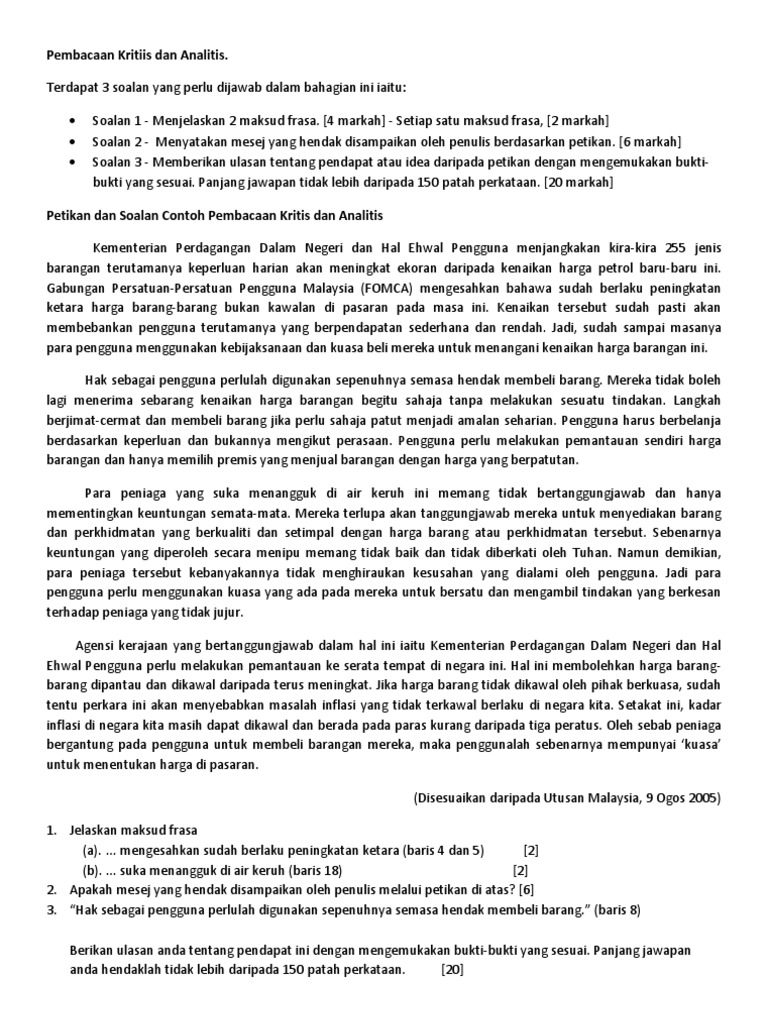 Contoh Soalan Pembacaan Kritis Dan Analitis